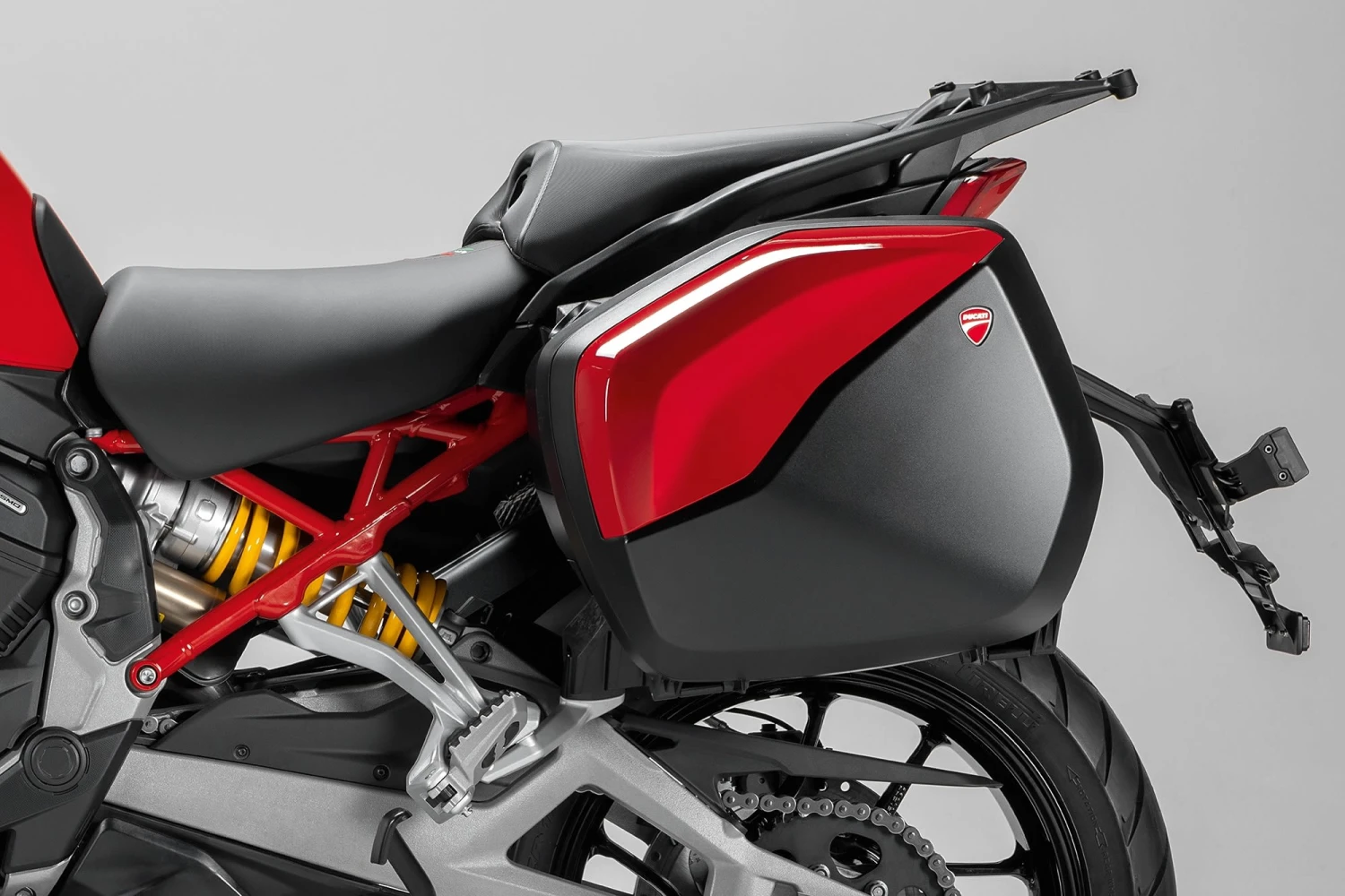 The high quality of the materials is combined with the lines in perfect Multistrada style, in an accessory that allows choosing the colour of the side panniers, to customise the look of the bike and enhance it with a touch of style that will not go unnoticed.