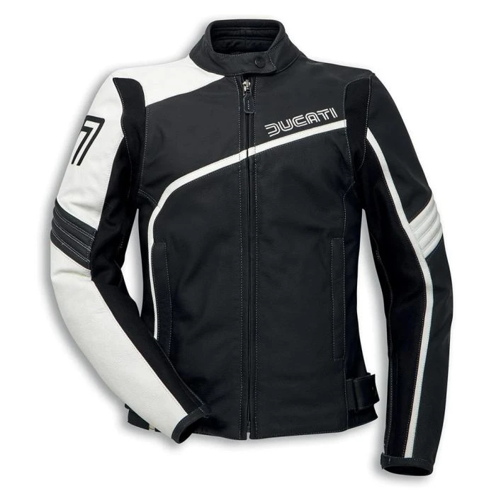 The Ducati 77 line, which takes its name from the year in which Giorgetto Giugiaro created the iconic logo for Ducati that appears on the apparel, is a contemporary reworking of the style of that time distinguished by asymmetries and great use of splashes of color. The Ducati 77 jacket, designed by Drudi Performance exclusively for Ducati, is CE-certified according to the latest regulations. Made of cowhide, it has protections on the shoulders and elbows, elastic inserts on the armhole, and includes a pocket for the back protector. Available in both men’s and women’s versions, it is perfect for urban motorcyclists who want to stand out.