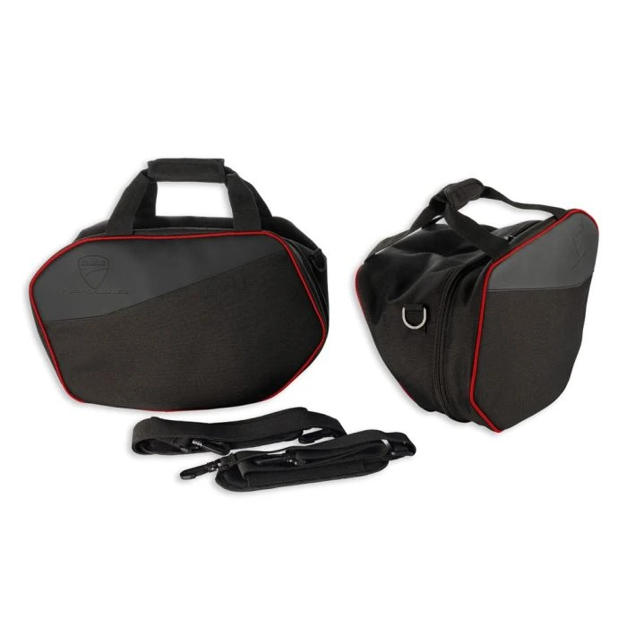 Very useful accessory to make use of all the space available and to keep the panniers tidy. Made in black fabric with red finishings, so as not to renounce to Ducati style, not even in the details. The practical handles for transport make it a versatile product, to maximise the comfort in every journey.